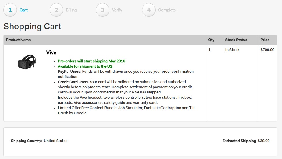 The first wave of Vive shipments are set to release starting April 5th, although HTC hasn’t specified chronologically where individual pre-orders fit in the provided ‘shipping in X-month’ window.
