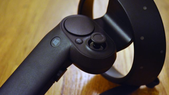 The ergonomic feel of the Windows Mixed Reality controllers makes them come off as a bit of a late addition, and leaves me waiting to go back to Touch or perhaps even the Vive controllers. They’re fairly large and unbalanced, and their big tracking rings are likely to bump into each other during moments of near-field hand interactions. The build quality feels a little cheap, especially the connection from the controller to the tracking ring, which flexes easily and doesn’t inspire much confidence in durability in the event of an accidental drop.