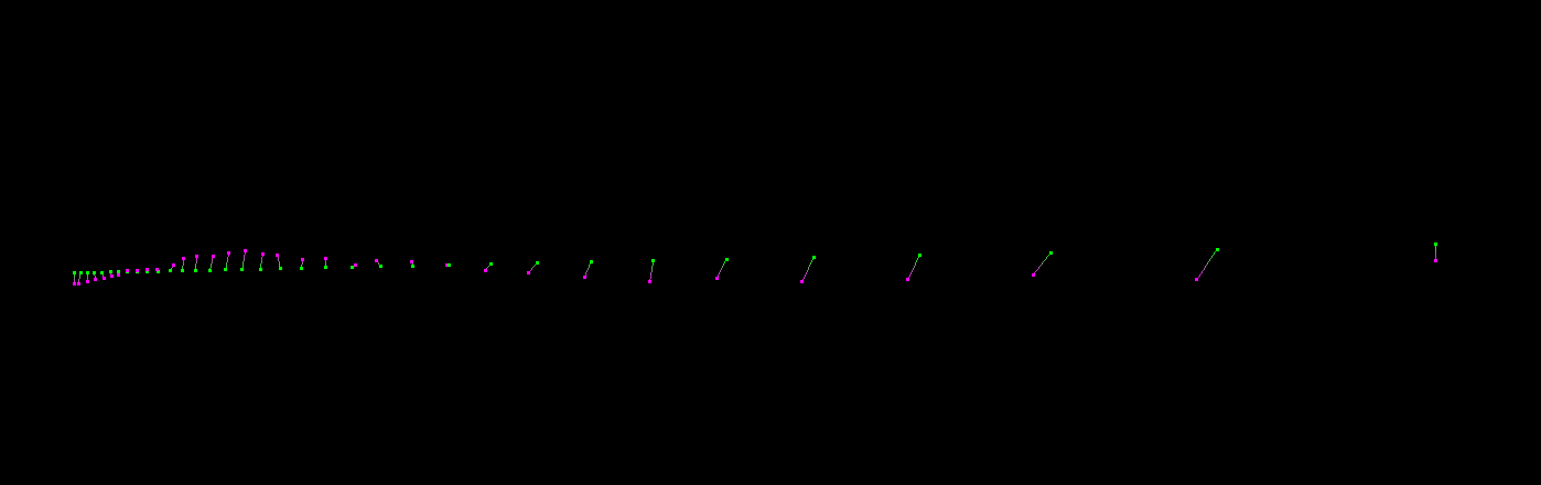 I placed a 36″ long ruler onto the floor in the center of my tracked space, and measured the 3D position of each 1″ mark using a small probe tip I attached to one of the tracked controllers (the probe tip’s position in the controller’s local coordinate frame, which is essential for repeatable point measurements, was derived from a simple calibration procedure). I then compared the resulting set of 3D points to the “ideal” set of 3D points, generated by computing each mark’s theoretical position in some arbitrary coordinate system, by running a non-linear point set alignment algorithm.