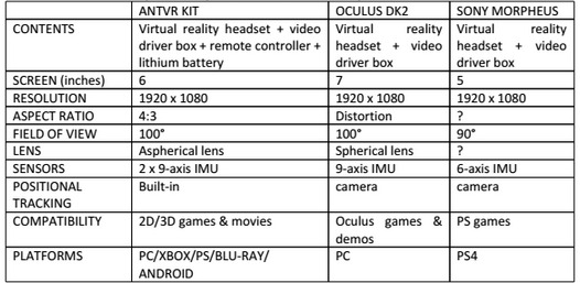 Finally, the comparison table used to stack AntVR’s system up against its competitors is simply inaccurate. The Oculus Rift DK2 uses a 5 inch panel, aspheric lenses and does away with the breakout ‘driver’ box. It would have to be said that merely stating ‘Built-in’ to describe AntVRs positional tracking system is somewhat unhelpful.