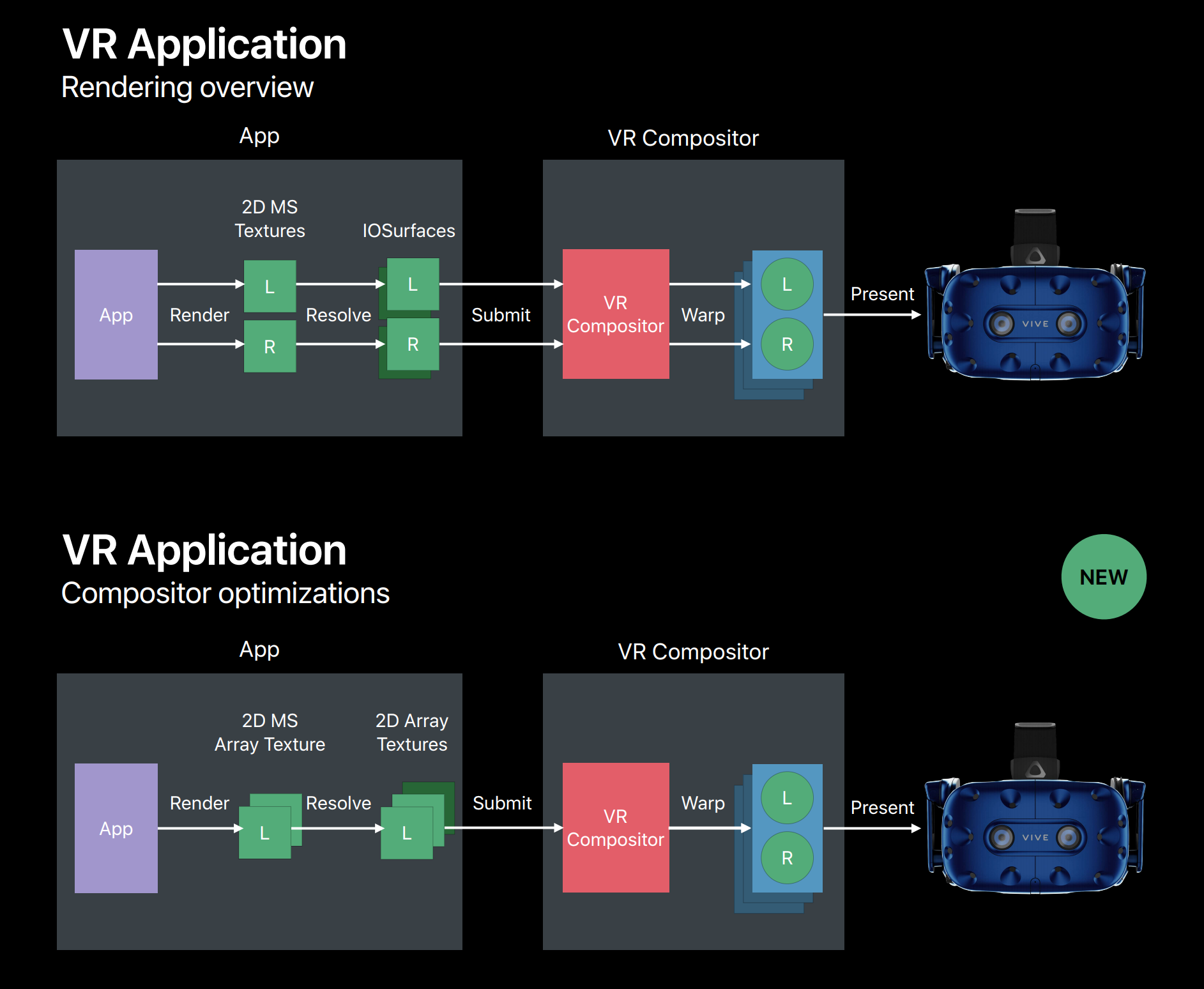Speaking on stage during a WWDC session titled ‘Metal for VR‘, Karol Gasiński, a member of the GPU Software Architecture Team at Apple, walked developers through the latest VR optimizations coming to MacOS Mojave (10.14) and offered an overview of how developers should think about optimizing their game’s graphics pipeline for VR. He also announced that Mojave will include “plug and play support” for the Vive Pro.