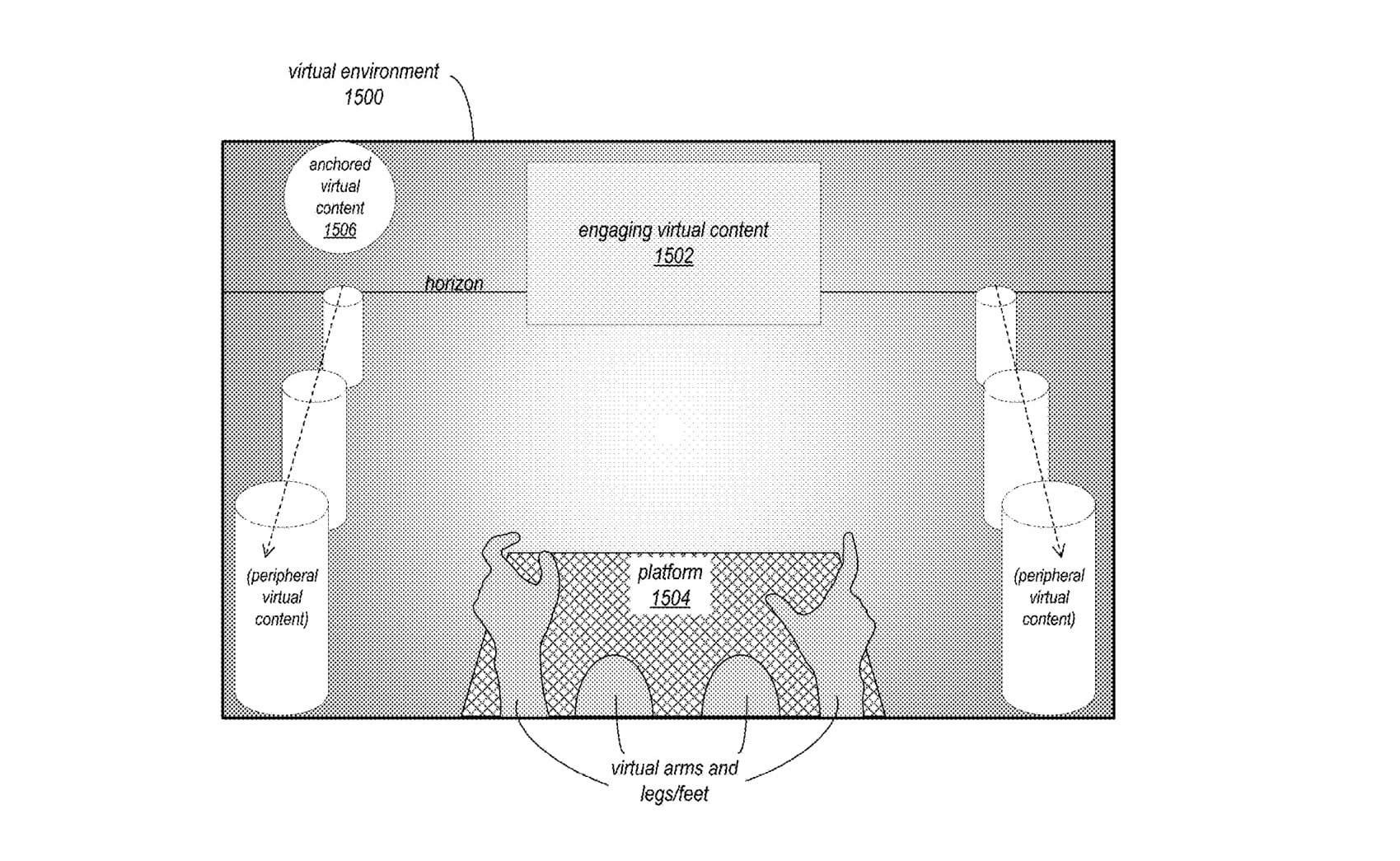 The patent even explores the idea of serving up virtual content according to how susceptible you are to motion sickness, giving you more virtual, stabilized anchor points and a horizon to help ward off motion-related nausea.