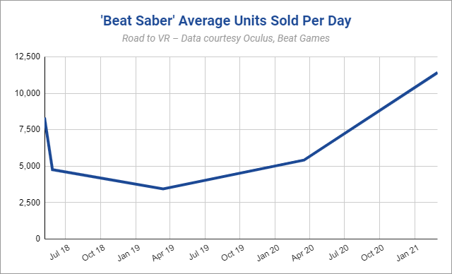 By now, Beat Saber can be considered nothing less than VR’s first killer app by scale. As far as we know, it’s the best selling VR game to date, now with 4 million units sold across all platforms (Quest, PC VR, and PSVR).
