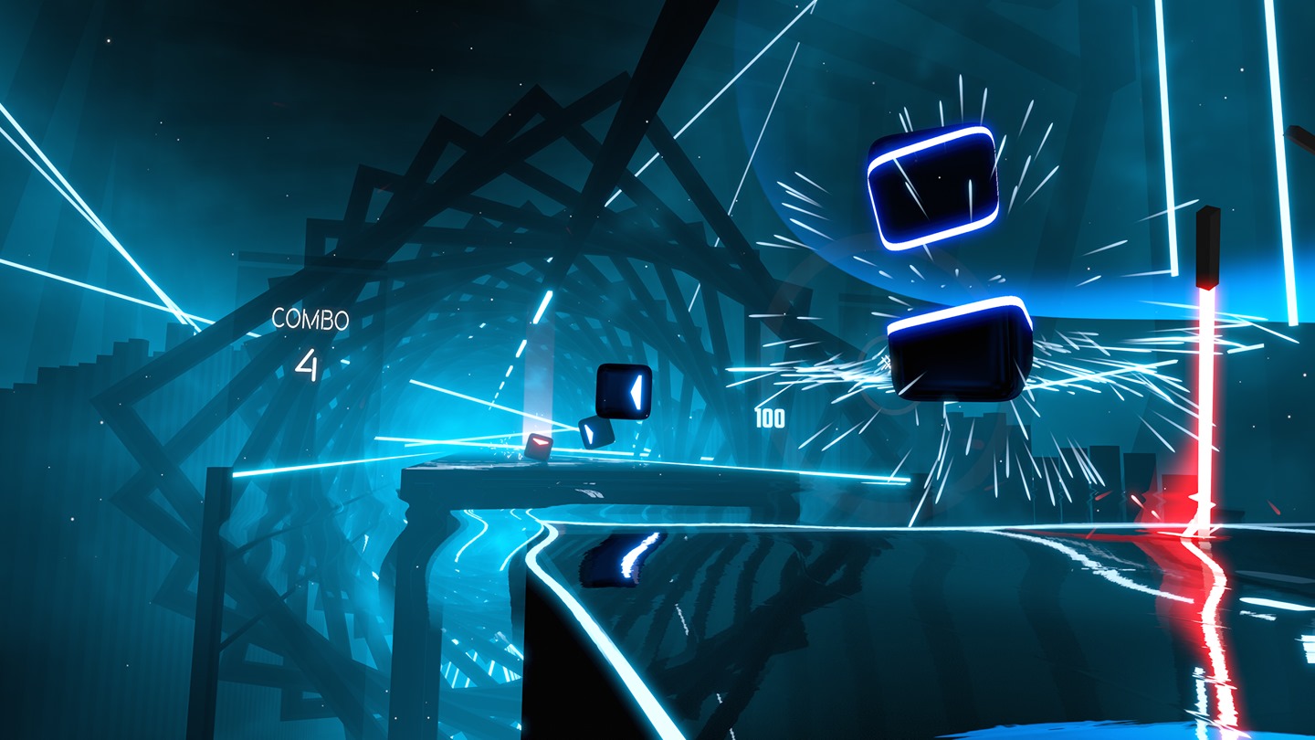 Since there is artificial locomotion at all, Beat Saber is among some of the most comfortable VR games you can play in terms of motion sickness. It can be physically tiring, but I never experienced any joint fatigue that I typically get in games that reward fast behavior, which if unchecked, can lead to hyper-extensions of the elbow joint.