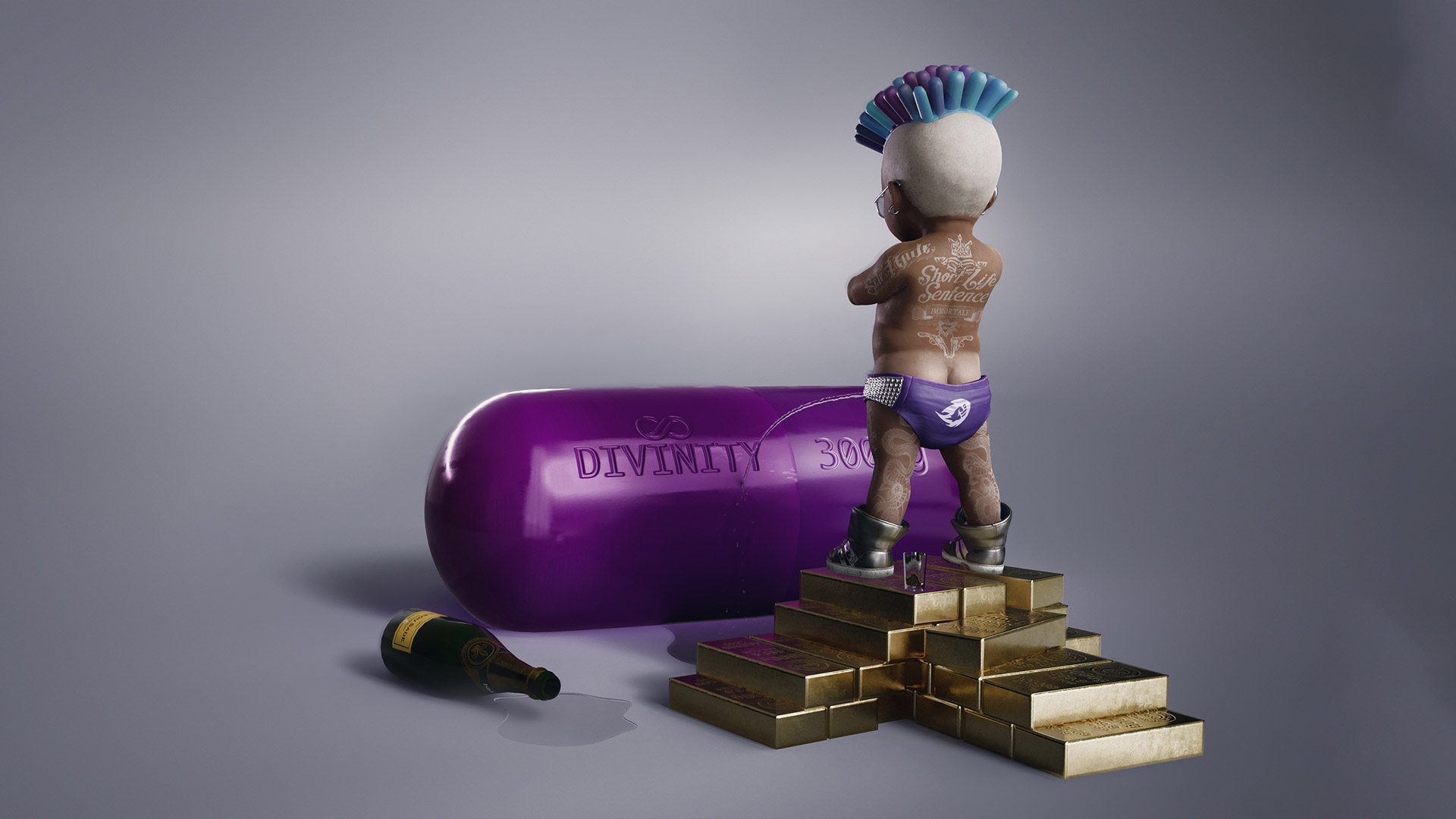 The game’s zany premise (and resulting aesthetic) is still there in full force. It posits a world where an immortality drug caused babies to stop growing physically beyond a few years old, leading to a futuristic world controlled by babies which gravitated toward a gaudy gangster fashion—an intentional clash of polar opposites.