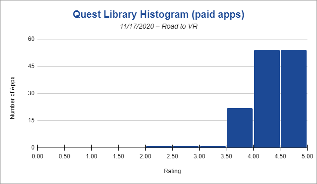 While the SteamVR library already has a comprehensive tracking database thanks to SteamDB, Steam 250, and more, no similar database exists to track applications on Oculus storefronts. We publish this data to give users, developers, and analysts insight into the Oculus app landscape.
