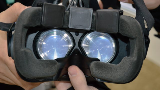 The company showed a rudimentary but functional VR demo using the ThermoReal dev kit with an HTC Vive. In the demo, a character throws fireballs or snowballs at you; the gloves on each hand would respond with the appropriate temperature effect depending upon which was thrown and which hand you blocked the ball with. If the fireball or snowball hit you in the face, you’d feel the temperature on your face thanks to the forehead-mounted haptic unit.