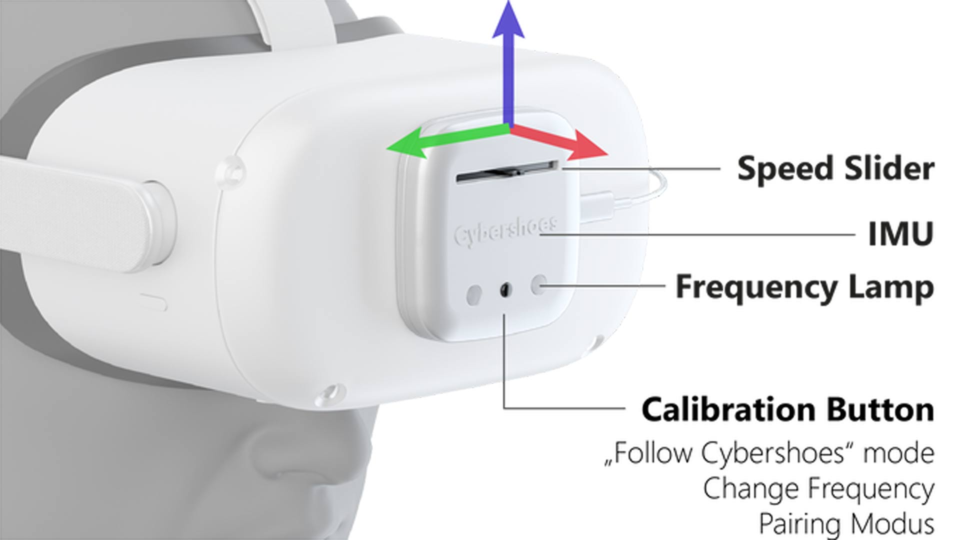 The head-mounted Quest module includes an additional IMU, which when fused with the shoes’ data, can be processed to obtain X and Y motion. For power, the device plugs in directly to either Quest or Quest 2 via the USB-C port.