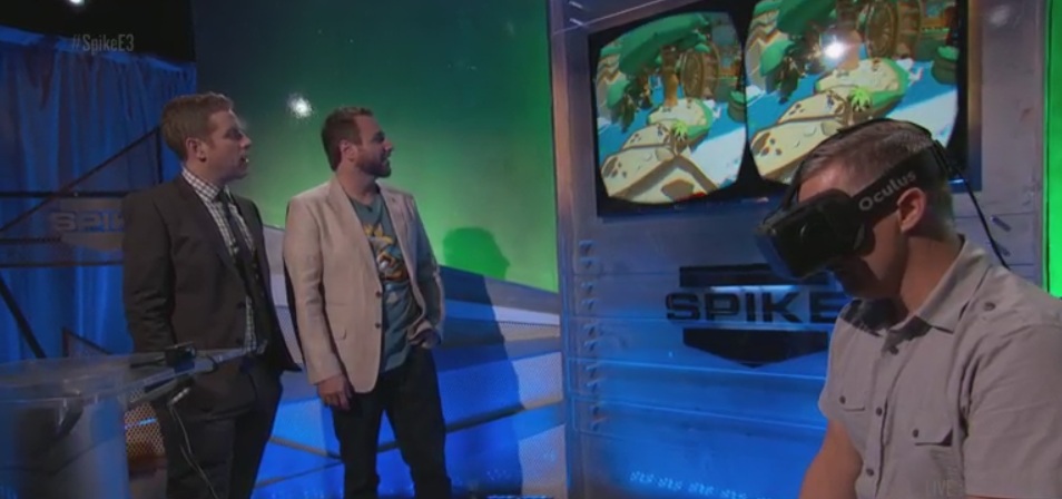 As Oculus VR announced recently, they continue to push their drive for virtual reality specific content by co-publishing their 2nd title (the first being EVE Valkyrie) and it’s a 3D platformer called Lucky’s Tale. Tonight on Gametrailers’ ‘All Access at E3’ show, Paul introduced the game which looks like a polished mash up of Mario 64, Conker and a dash of Yoshi’s Islans – and was demonstrated using an Oculus Rift DK2 – by a gentleman looking very much like Oculus VR’s Aaron Davies, Director of Developer Relations.