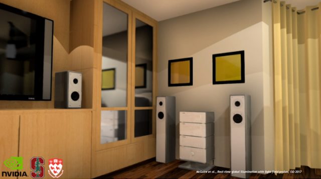 We released three research papers this year towards solving the denoising problem. These are the result of collaborations with McGill University, the University of Montreal, Dartmouth College, Williams college, Stanford University, and the Karlsruhe Institute of Technology. These methods can turn a noisy, real-time path traced image like this: