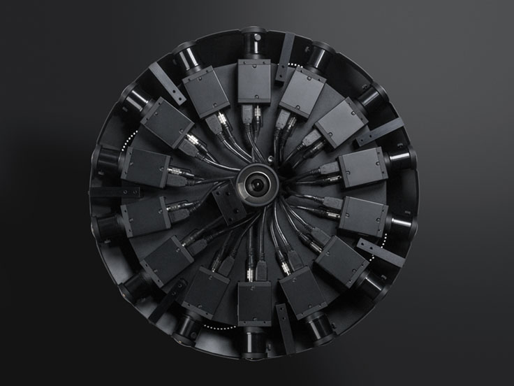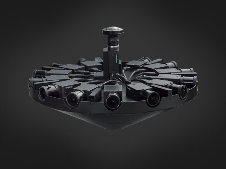 The “high quality, production ready, 3D, 360 hardware and software video capture system” (phew!) comprise plans and designs for constructing the 3D 360 camera hardware, a system made up of a rugged aluminium body, housing 17 cameras, all synced with global shutter – with 14 alone spanning the circumference of the camera, leaving one fisheye camera pointing up and two further shooting down.