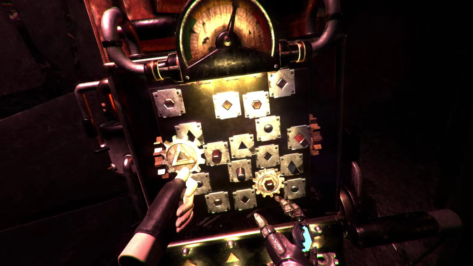One of my favorites was the gear puzzles, where you have to slot in the right gears within a certain amount of time in order to use a door-opening lever. The little gears have differently-shaped axle inserts, so you have to plan ahead so you can get them all in correctly before the timer runs out, or you have to start over again.