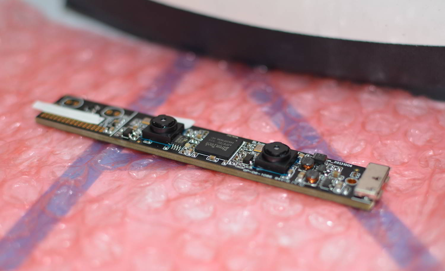 The Mark 5 GameFace prototype will also see the addition of a front-facing depth camera that will be mounted to the mobile VR headset, presumably for sensing the user’s hands, and possibly the environment around them. The company wouldn’t share the make or model of the depth camera, but I had a chance to see the unit that will be used.