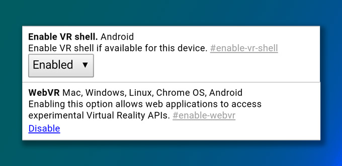 The latest builds of Google Chrome Beta and Google Chrome Dev on Android bring two important new features for making this a reality. Chrome Beta now contains a WebVR setting which enables enhanced VR device compatibility with VR websites built against WebVR standards. Chrome Dev (one extra step back in development from Beta) now contains a ‘VR Shell’ setting which Google’s Chromium Evangelist François Beaufort says “enable[s] a browser shell for VR” which “allows users to browse the web while using Cardboard or Daydream-ready viewers.” Both options are available in the browser’s Flags page, accessed by entering chrome://flags in the URL bar.
