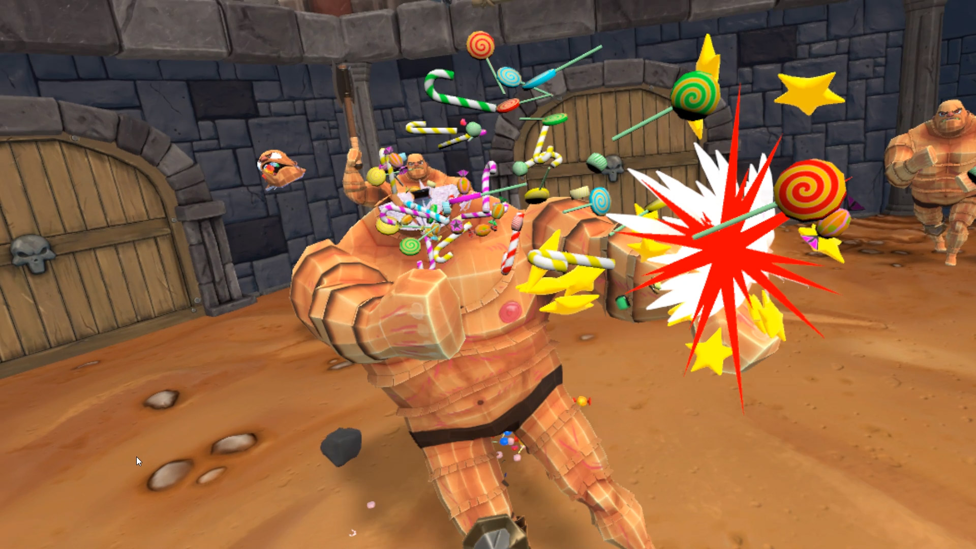 Speaking of violence, Gorn’s over-the-top violence can now optionally be toned down. A new ‘Low Violence’ mode gives enemies the appearance of being made from paper or wood, and, instead of spewing blood and guts, they’ll spew candy like a piñata instead. A thoughtful option which may make the game more suitable to a wider audience.