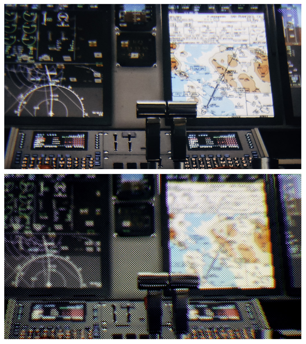 This example image from Varjo shows the difference in visual quality between the image from the traditional display and the microdisplay (click to zoom):