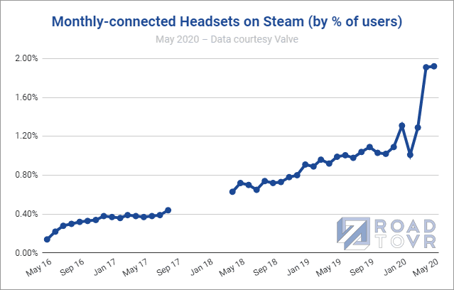 In fact, the recorded number of VR headsets has actually gone up by a fraction, going from April’s 1.91% to 1.92% in May.