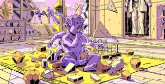 Starting the app for the first time, you’re greeted by a set of artworks that form a short, suitably abstract comic strip offering a loose explanation for why a mind-bending toy box like this might exist, and then you’re thrown right in. Most of the objects are immediately accessible, laid out in a grid, allowing the user to choose a particular shape or set of shapes to play with. Ten Bosch recommends that VR users sit on the floor (and ensure that the virtual floor aligns with your own) to give the best feeling of engagement. His intention is to offer an undirected experience, giving any player a childlike sense of wonderment as they discover these ‘impossible’ toys.