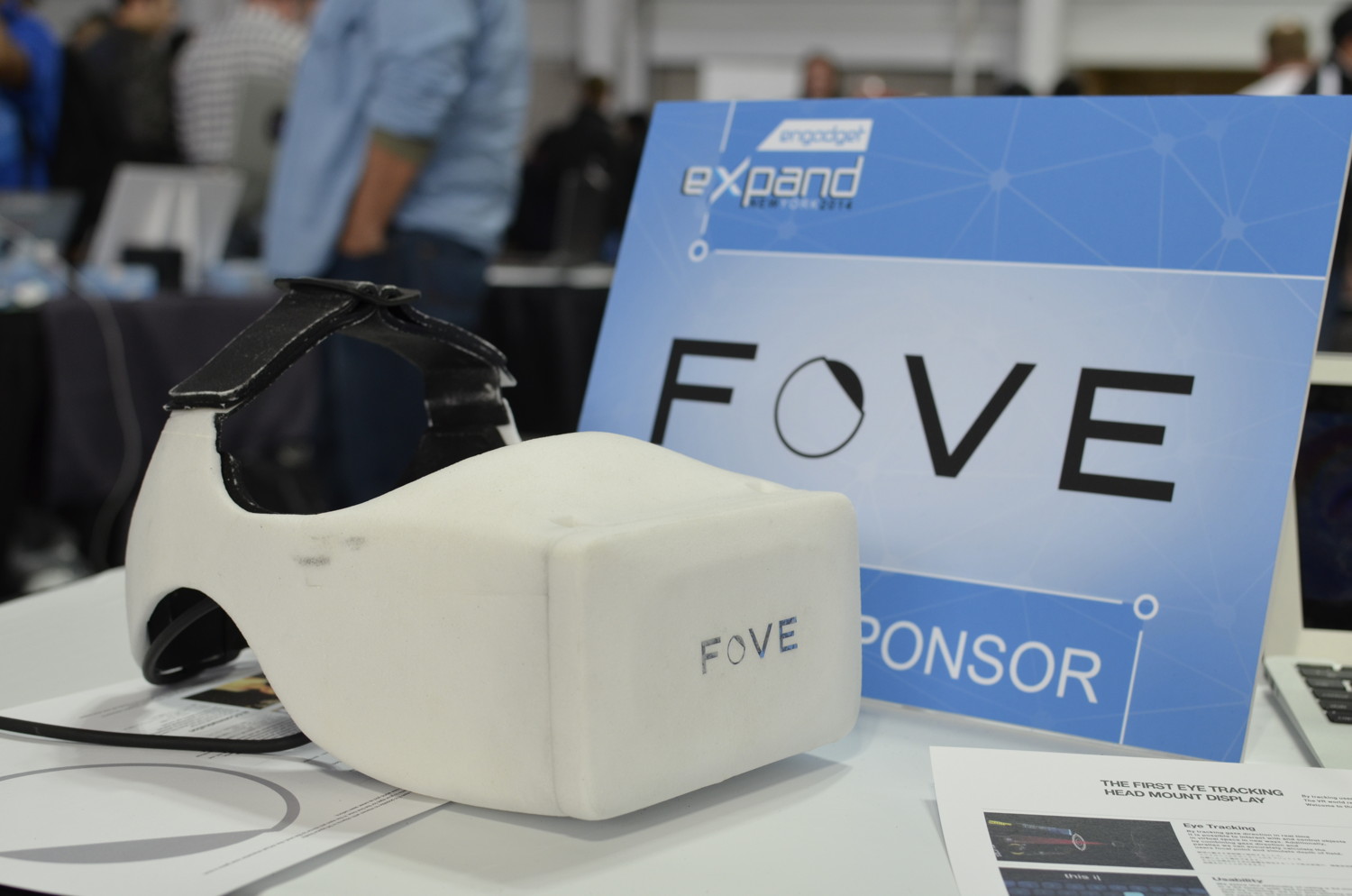 Kojima had the Fove HMD connected to a laptop at Expand that struggled to run the experiences that were demonstrated; at 10-15 FPS, it was clear that the company wasn’t too concerned with showing a high fidelity VR experience, rather they just wanted to show their eye-tracking tech. Unfortunately it was unclear if some lag I experienced with the eye tracking was due to the company’s tech, or merely an insufficient computer. We’re soon hoping to get our hands on a the company’s latest prototype with a more powerful computer running the demo.
