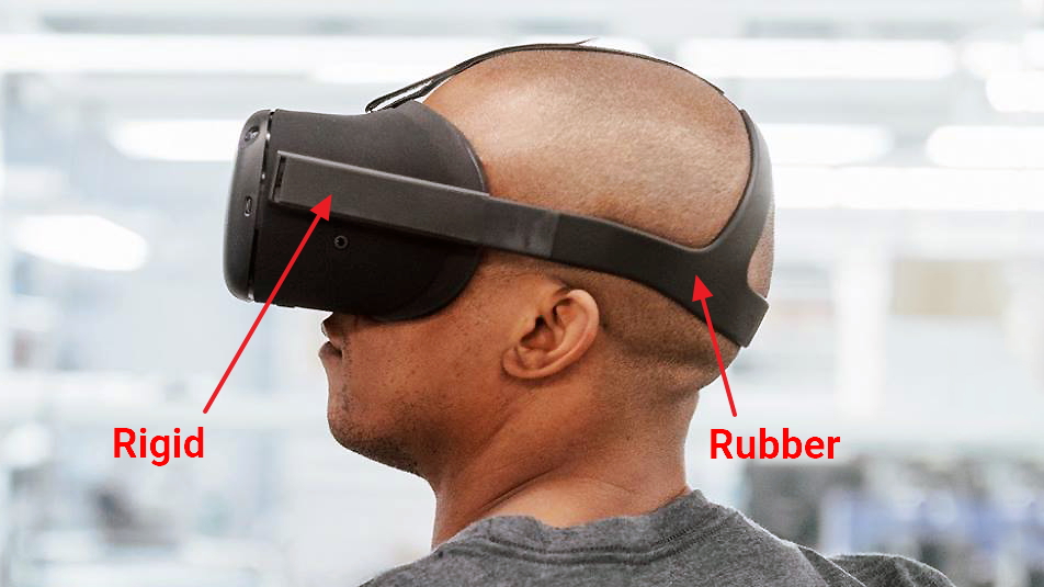 The new stretchy rubber head strap actually seemed quite comfortable to use. Not only was it easy to put on, but the rubber can better conform to the back of your head, whereas the shape of the Rift’s rear rigid head strap (the triangle area) is really only ideally suited for someone with one particular head shape (since it can’t flex).