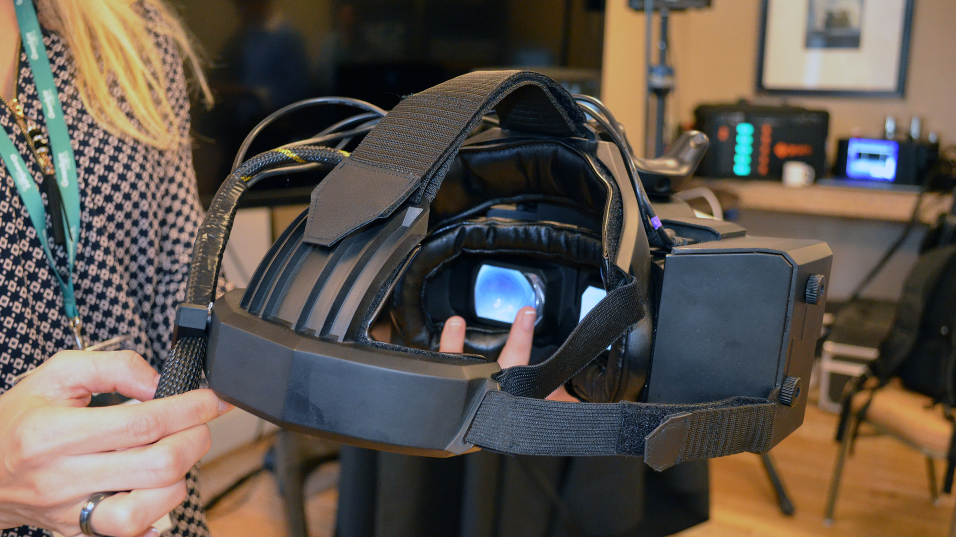 For one, they said that nothing is being downsampled; the demos I was looking at were running on a $1,200 NVIDIA Titan Xp GPU, which they say was cranking out 2,560 × 1,440 frames at 70Hz, per eye. Inside the headset, they’ve got the right components to handle that bandwidth without degrading image quality, the company told me. And then of course there’s the lenses, which VRgineers said were custom made for the headset and tuned for clarity, even at the expense of weight and other factors. Another advantage for image clarity would be that the VRHero “5K” has a somewhat smaller field of view than the Pimax “8K”, which means it sacrifices a bit of image size for increased pixel density.