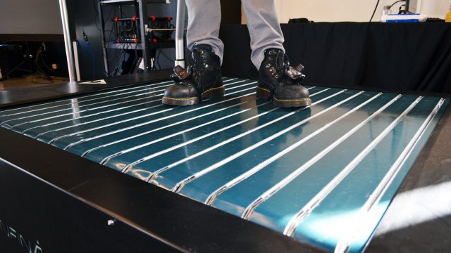 My biggest concern when walking on the Infinadeck, actually, was that I might outpace the treadmill and walk off the edge; indeed I could have if I walked at a brisk pace, but the folks demonstrating the Infinadeck told me they had set the speed significantly lower for demonstrations. They cranked it up a bit for me just to show that it could go faster, but with no safety harness they didn’t want me breaking into a run, let alone a jog.