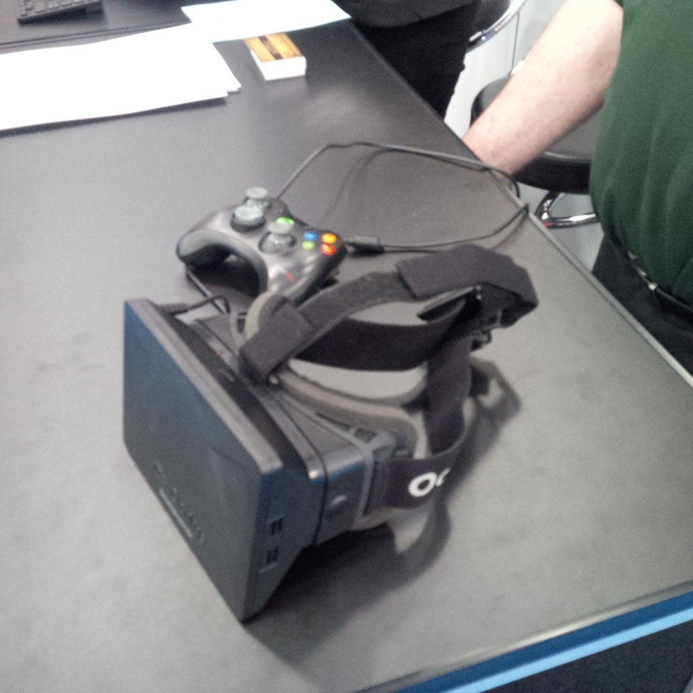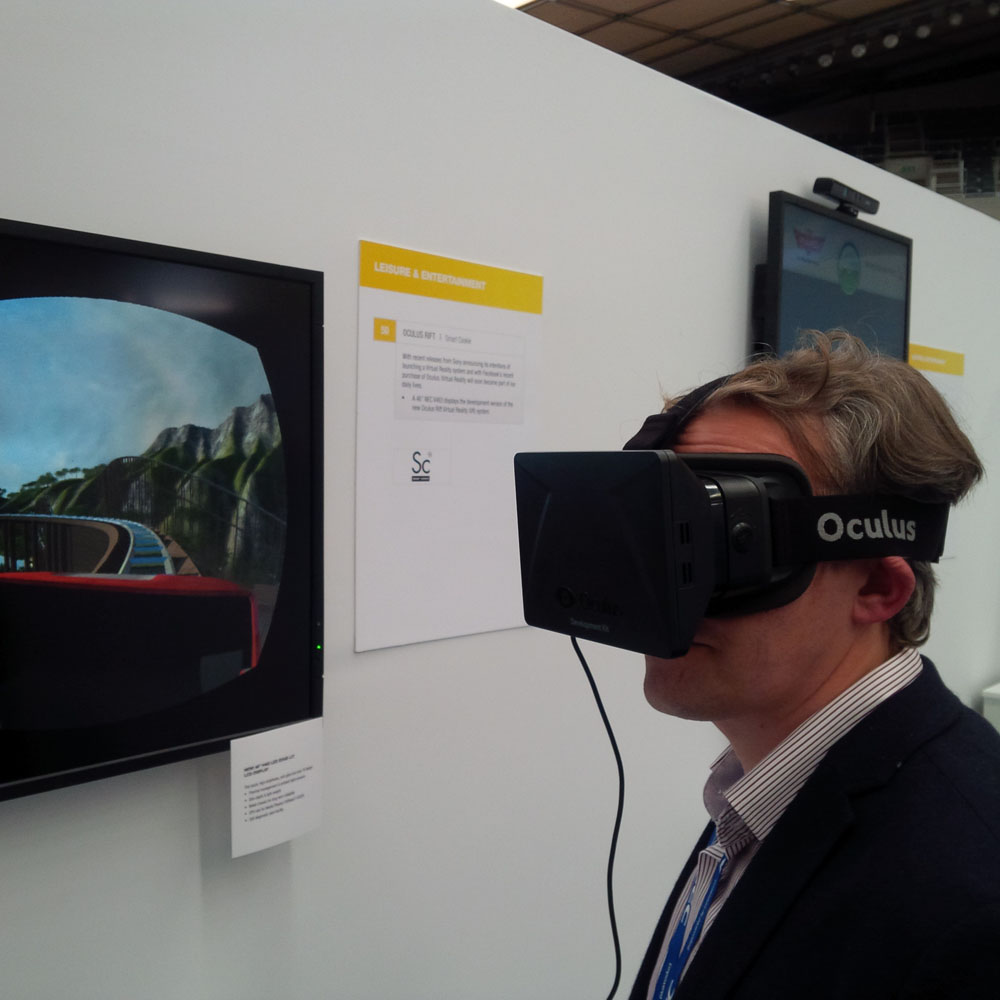 The company also brought to the event a Oculus Rift DK1 and the rollercoaster demonstrator—offering an opportunity for the high powered executives walking the showcase floor a chance to experience the opportunity that VR offers.