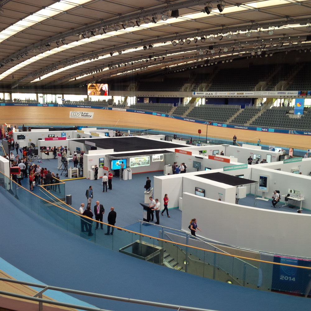 Cross town to the next conference and presentation, and we found ourselves at the famous London Olympic Velopark—one of the iconic buildings of the stupendous 2012 London Olympic games. The versatile site has turned over to electronics-giant NEC and their suppliers, who held their annual NEC Solution Showcase, a gathering of the latest technology for the commercial sector ranging from screen signage, retail, media, control-rooms, large displays, and leisure entertainment.
