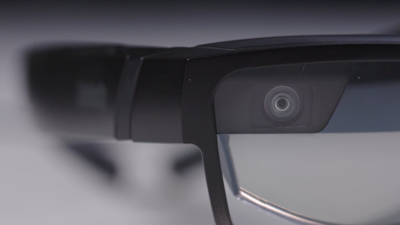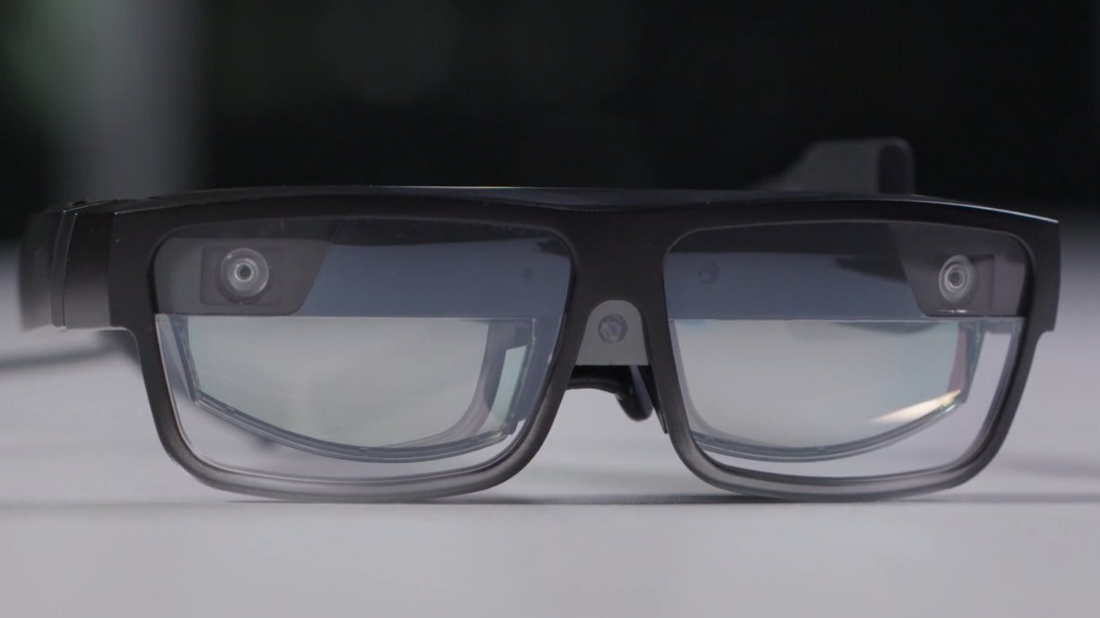 The headset’s near-eye optics sit behind the glass frame. From the photos it’s not exactly clear whether the headset makes use of waveguides like Microsoft HoloLens 2, or birdbath optics like Nreal Light. The lack of heavy lens shading points to waveguide optics, which are more costly and difficult to manufacture, but typically provide better brightness.