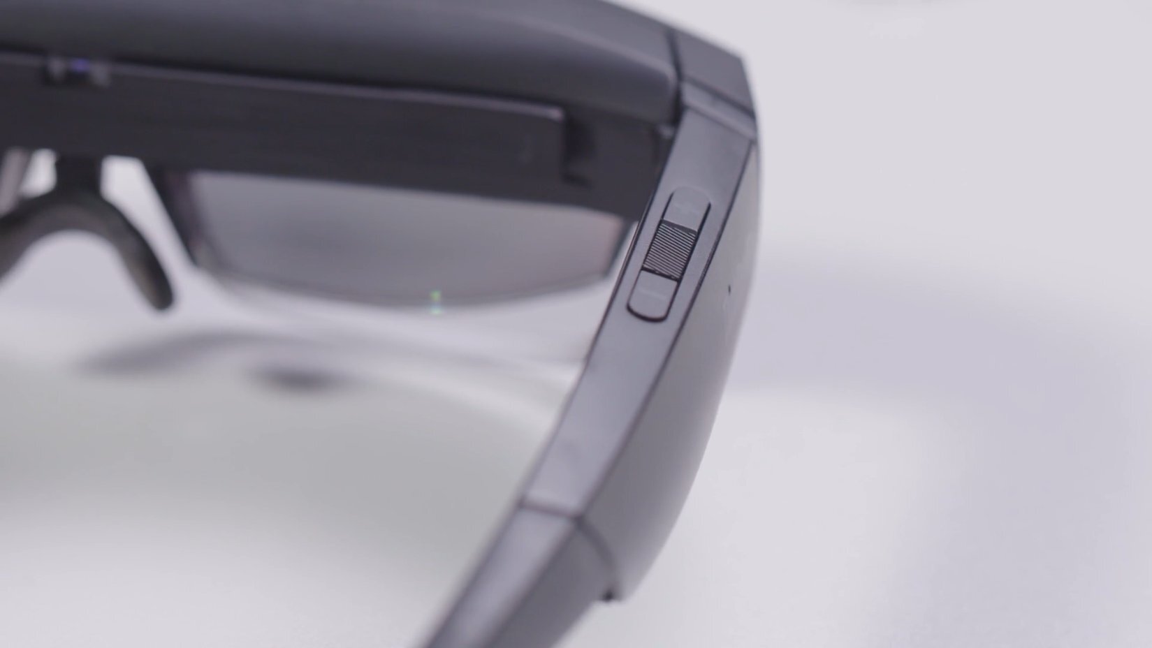 On the right temple you can see what looks like a volume rocker and possibly a textured select button in the center. A large nose piece looks capable of keeping the headset well off the user’s face.