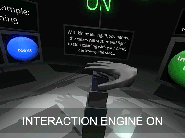 “The Interaction Engine is designed to handle object behaviors as well as detect whether an object is being grasped,” reads a recent blog post introducing the Interaction Engine, “This makes it possible to pick things up and hold them in a way that feels truly solid. It also uses a secondary real-time physics representation of the hands, opening up more subtle interactions.”