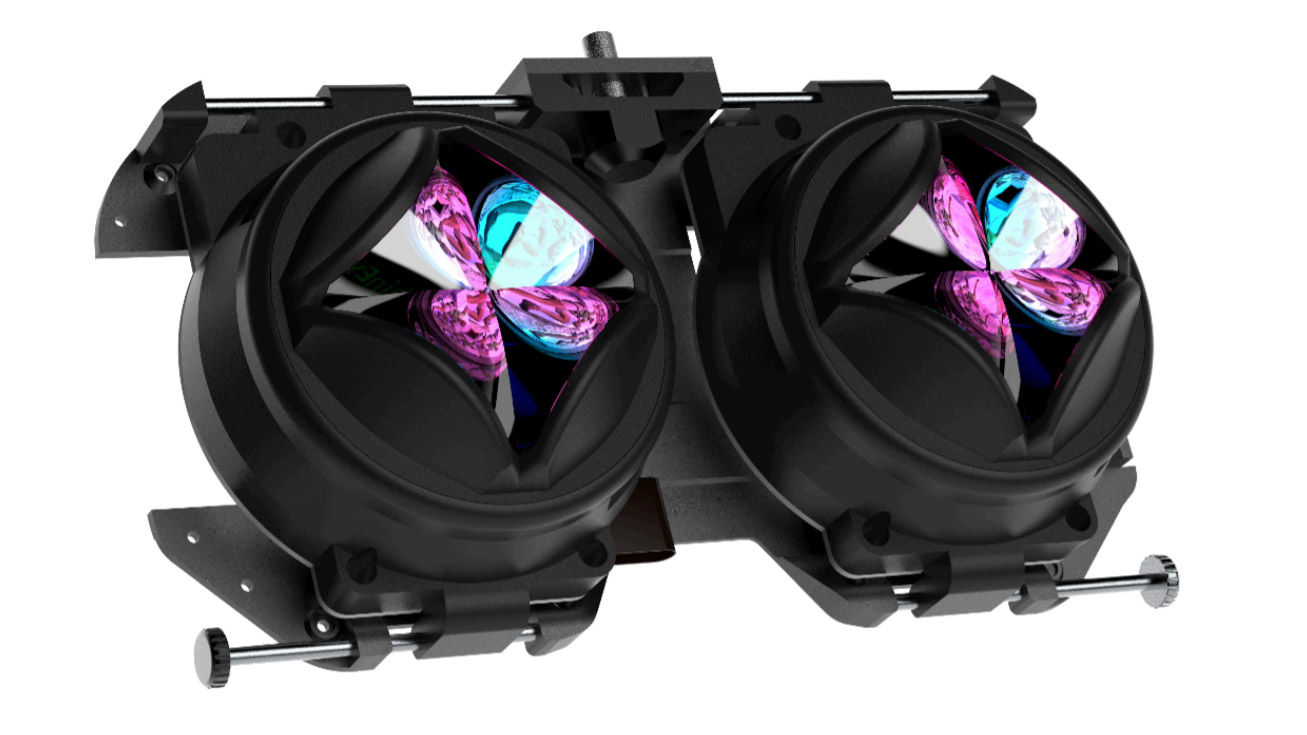 Because of the unique shape of the lens, Larroque says the headset’s resolution will be concentrated at the center of the lens and along the horizontal & vertical axes. We’re quite interested to see if the seams between each part of the lens will be well hidden or not.