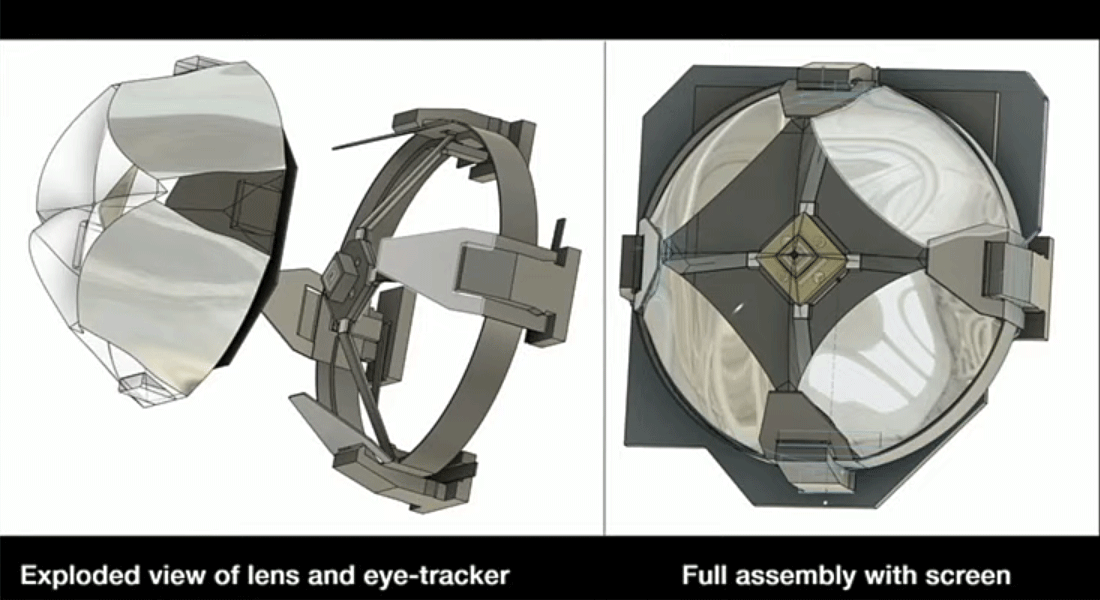While there’s purported benefits to this lens approach, the R-1 headset only achieves a 90 degree horizontal field of view, and it’s hard to imagine that some of the lens seams won’t be visible, though we haven’t had a chance to look through the headset in person just yet.