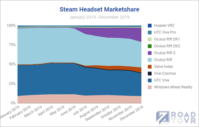 The headsets saw some traction initially, especially as retail discounts made them an attractive budget option. Windows VR headsets peaked at 11.13% of the share of headsets in use on Steam in June 2019, but have been slowly declining since then, down to 8.05% as of January, 2020.