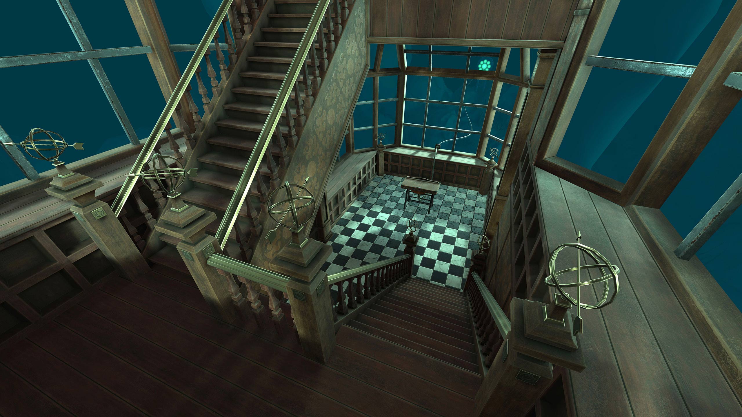 Myst features both variable snap-turn and smooth turning. You can also toggle smooth forward locomotion and teleportation on the fly, which can be helpful when ascending winding staircases, which normally make me queasy. There aren’t any vomit-inducing rides to worry about either, so Myst can be a very comfortable experience.