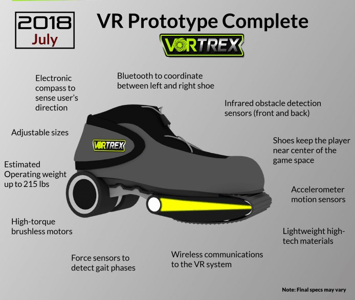 Dubbed ‘Vortrex’, the VR shoes were first conceived when Hyneman strapped cordless drills to a pair of roller skates to see if he could speed up the normal skating pace. Using what he learned combined with a long history as a special effects supervisor, the new VR shoes are less about moving the user forward like a roller skate and more about keeping the user immobile like on a treadmill. The campaign aims to offer a VR walking experience that crucially reduces the pain points of owning an omnidirectional treadmill like Virtuix Omni or Kat VR; hefty pieces of kit that require a dedicated space.