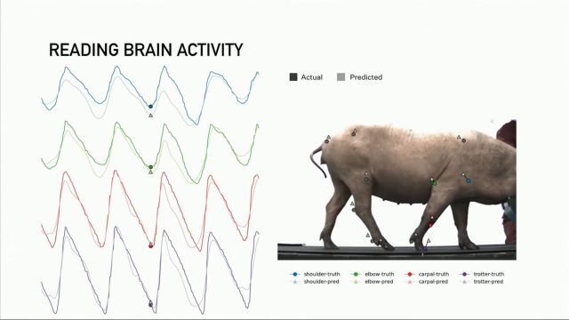 Though there was a significant amount of error in the predicted positions, it was still close enough to appear impressive considering the source of the data. While Musk said the predictions were based on the “neural activity” of the pig, he had also said previously in the presentation that the Link would include other sensors like an IMU; we’ll be interested to see more detailed research published on this particular experiment, as the addition of IMU data would make it a much less impressive demonstration of rudimentary limb-tracking. A pig’s gait is also not a particularly dynamic pattern, so it isn’t clear how well this method could translate to something like human arm motions.