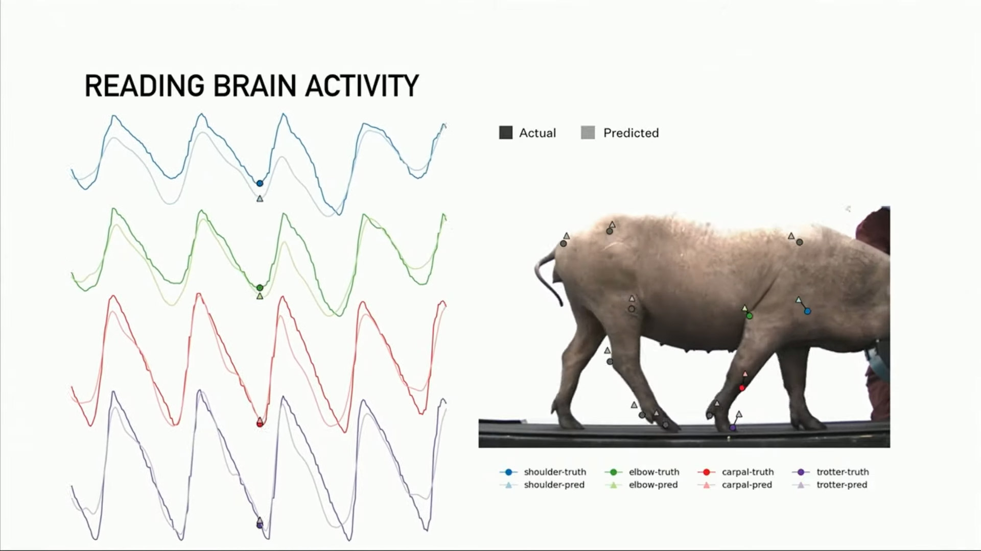 Musk showed that Neuralink had rigged up an algorithm for rudimentary limb-tracking using input only from the Link. The company used the data to predict the position of each limb which was matched with visual measurement of the limbs to show how closely the prediction matched reality.