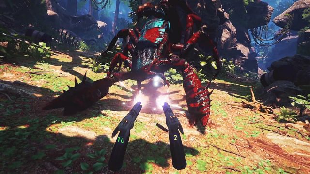 When we first played the game, there wasn’t a gun in sight. The game focused heavily on showcasing detailed dinosaur models. Road to VR’s Scott Hayden succinctly compared to to “Jurassic Park before things went wrong.”