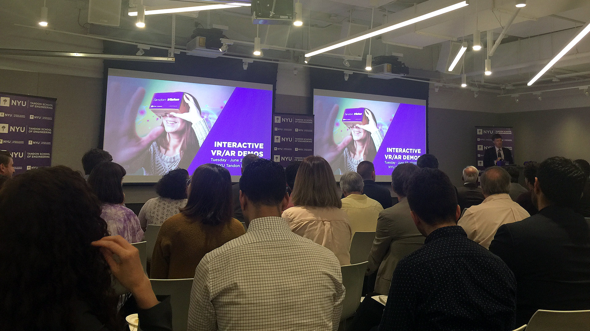 Speaking on a first-floor wing (known as the ‘MakerSpace’) of Tandon’s 6 Metrocenter building in Brooklyn, Glen described a cross-borough investment of $6 million by the New York City Economic Development Corporation (NYCEDC) and the Mayor’s Office of Media and Entertainment (MOME). The lab-hub’s ambitions to fuse VR and AR education, entrepreneurial pursuits and corporate enterprise echo those of the NYC Media Lab, a public-private partnership founded by the NYCEDC that operates out of 2 Metrocenter. Indeed, NYC Media Lab Executive Director Justin Hendrix was on site for the announcement and hailed for his role in pushing the deal.