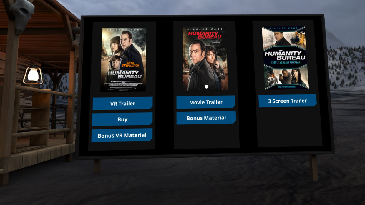 Heading into the free VR trailer portion, you’re given a taste of what’s to come; mediocre acting, bad dialogue, bad lighting, bad positional audio, all of which sums up to be one of the most shameful quality 360 films I’ve seen recently. A lesser sin; none of the menus allow for positional tracking and only give you a gaze cursor to make selections – a decidedly minor quibble for PC VR users. Below is an actual promotional image for the VR experience.