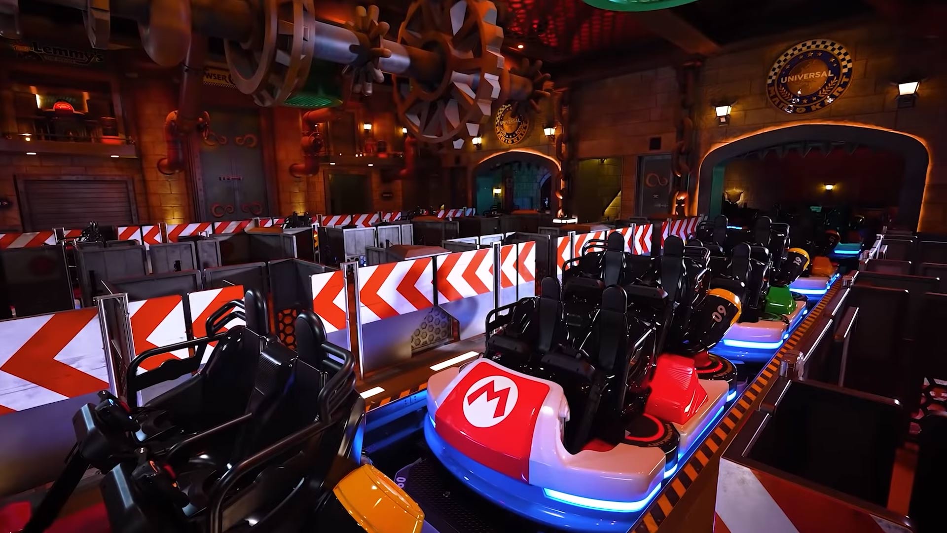 The Mario Kart AR ride takes place inside a recreation of Koopa’s (aka Bowser’s) Castle, and kits out riders with AR headsets topped with Mario’s iconic cap. USJ says on its website that park-goers will be able to race against other players through Mario Kart courses, toss out shells, and sprint to finish line with Mario and Peach. Check out Bloomberg’s first look below to get a peek at the ride.