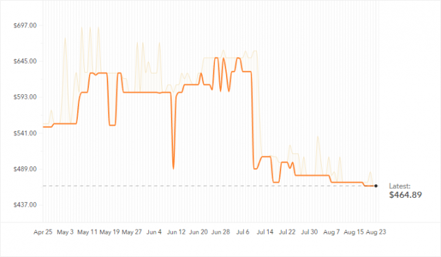 With the RTX cards announced but not actually starting to ship until late September, we expect this trend to continue and for prices to fall still further. We expect there to be a ‘sweet spot’ for low prices between when NVIDIA’s own ‘Founder’s Edition’ RTX cards begin shipping (late September) and the later date when RTX cards from third-party card makers start shipping.