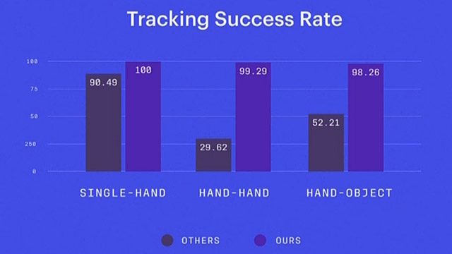 By measure of something Oculus labeled ‘Tracking Success Rate’ (and also described as “accuracy,” the company claims to have achieved a rather astounding 100% success rate with single hand-tracking, up from the claimed 90.49% of other hand-tracking methods. The company claims even bigger leaps compared to other methods for two-handed and hand-object interactions.