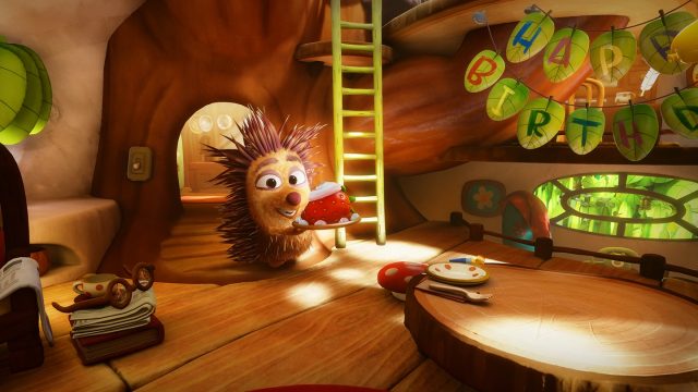 If you download the latest version of Henry on Go or Gear VR, you’ll see a scene with quality which looks nearly as sharp as real-time rendering, but with much greater detail than could be rendered on a mobile VR headset, thanks to the fact that you’re actually looking at pre-rendered footage. Not only is the detail impressive, but the 60 FPS playback makes things look smooth, and it’s 3D to boot.