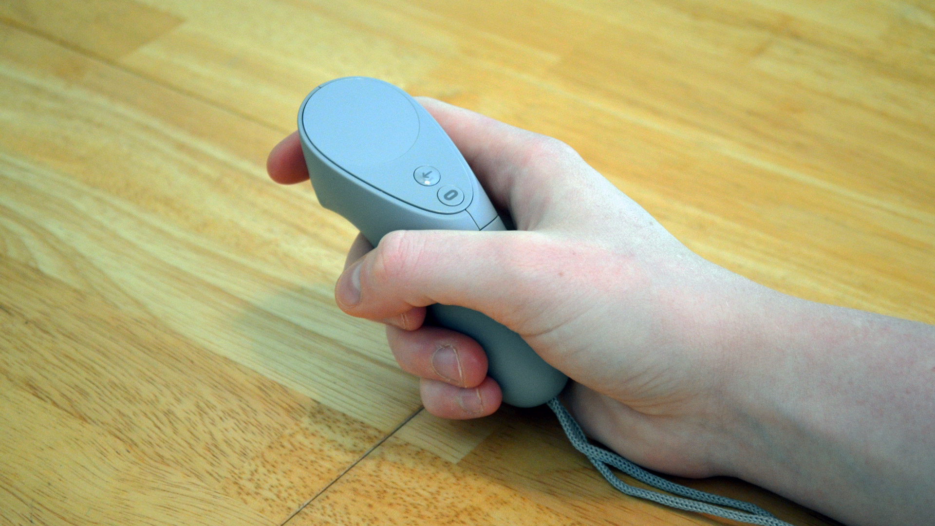 The Go headset and controller offer 3DOF tracking (only rotation), which makes the headset best for seated use. Both have very little latency. The controller’s shape feels more refined than the Gear VR controller that came before it, but generally works the same—you’ll see it inside the headset where it will be used mostly for laser pointer-like interactions, as it is limited to 3DOF tracking.