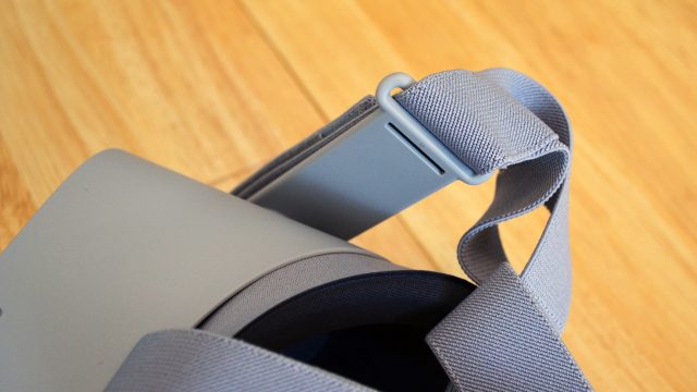 At 468 grams, the Go is slightly lighter than Gear VR’s ~500 grams (varies based on phone), but the difference feels mostly negligible. The Go uses a similar head-mount strap which goes around and over the top of the head, except the back part is split into two sections which cups the back of the head a bit more and generally helps the strap stay in place. The hard arms that connect the strap to the headset rotate completely around, making it easy to vary the weight distribution between your brow and your cheeks, or to rotate the strap out of the way for quick and easy ‘hand-held’ viewing without having to fully remove it.