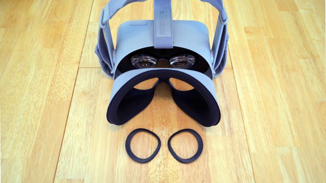 Speaking of glasses, Go comes with a glasses-spacer: a rubber gasket which can be inserted behind the headset’s facial foam, increasing the lens-to-eye distance to make room for glasses. It’s a little awkward to install, so you won’t be putting it on and taking it off for each user if you’re passing the headset around, but it’s good to have the option. The lenses now also have detachable plastic brackets which Oculus says are designed to allow perception lenses add-ons to be attached; they say partners will be making prescription lenses for Go, but haven’t offered much detail on that just yet.