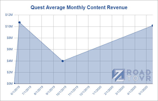 Of course, this data is quite sparse; notably we’re missing data around the holiday season which likely saw a major bump in revenue from content purchases on Oculus Quest, so that would surely bend the line between the last and second to last data points but we can’t say by how much.