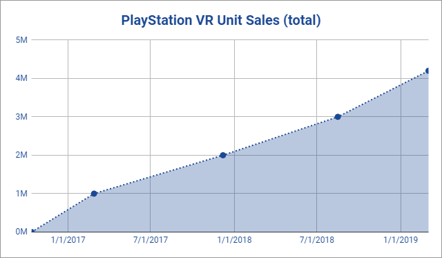 Among the leading headsets, only Sony has shared official sales figures for PSVR; the company announced back in March that it has sold-through 4.2 million PSVR headsets since the product’s launch in late 2016.